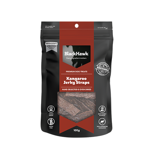 Black Hawk Kangaroo Jerky Straps are approximately 80mm long and 15mm wide. The result is a high quality treat ideal for medium to large dogs over 12 months of age.