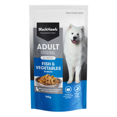 As a pet parent, it’s natural to want to offer your dog a range of textures and flavours. Black Hawk Fish and Vegetables in broth has been specifically designed to help you keep mealtimes interesting, without compromising your adult dog’s balanced nutrition. It is served in a rich and delicious chicken broth and includes nutritious vegetables and fish, packed with omega-3 fatty acids and protein to support your dog’s body and brain.